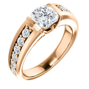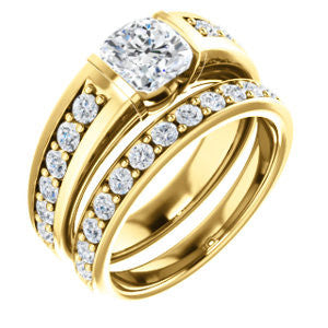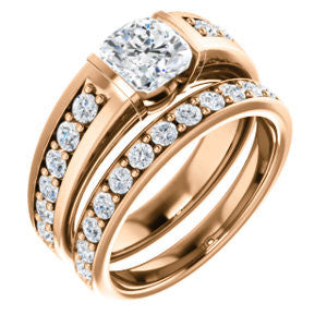 CZ Wedding Set, featuring The Rosemary engagement ring (Customizable Cushion Cut Tension Bar Set with Wide Channel/Prong Band)