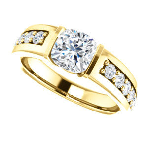 Center Stone Shape: Cushion Cut (as pictured). See this customizable ring set with other available center stone shapes here: customize setting.
