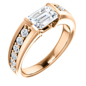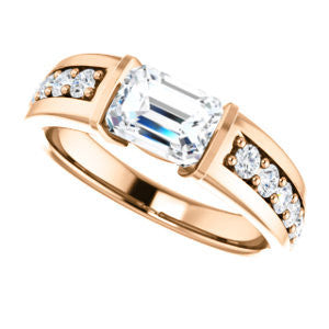 When you choose The Rosemary engagement ring available with your choice of customizable Emerald-cut AAAAA diamond-quality Cubic Zirconia center stone, please let us know why exactly you bought this one out of thousands of designs available in our catalog? Seriously, the not knowing about why this ring is so popular could cause someone to go crazy!  And please don't tell us it's because The Rosemary is among the only tension bar-set-centered rings we make. We already considered that possibility and surely it can't be that simple.
