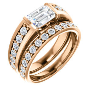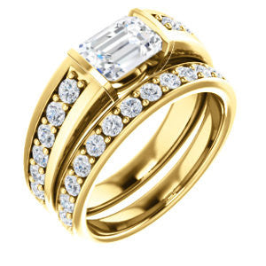 CZ Wedding Set, featuring The Rosemary engagement ring (Customizable Emerald Cut Tension Bar Set with Wide Channel/Prong Band)