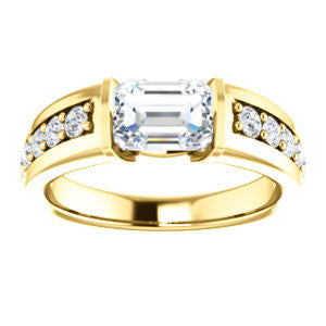 Center Stone Shape: Emerald Cut (as pictured). See this customizable ring set with other available center stone shapes here: customize setting.