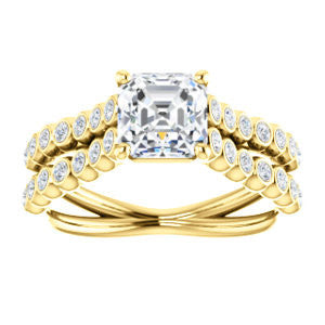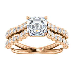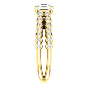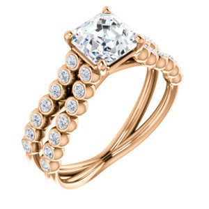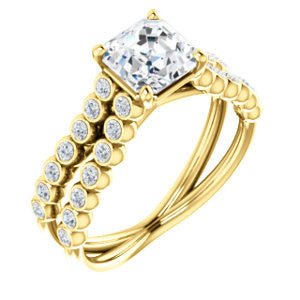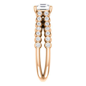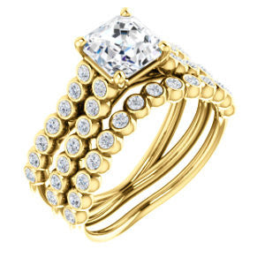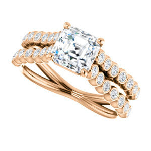 CZ Wedding Set, featuring The Roxana engagement ring (Customizable Asscher Cut Design with Beaded-Bezel Round Accents on Wide Split Band)