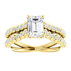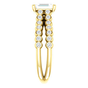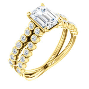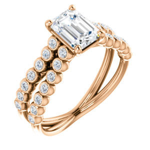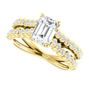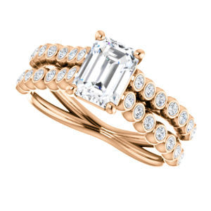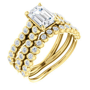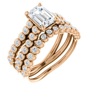 CZ Wedding Set, featuring The Roxana engagement ring (Customizable Radiant Cut Design with Beaded-Bezel Round Accents on Wide Split Band)