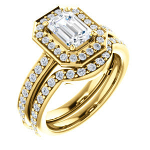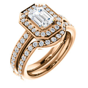 CZ Wedding Set, featuring The Sally engagement ring (Customizable Halo-Radiant Cut Design with Round Side Knuckle and Pavé Band Accents)