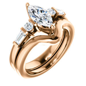 CZ Wedding Set, featuring The Sarah engagement ring (Customizable 5-stone Design with Marquise Cut Center and Baguette/Round Bar-set Accents)