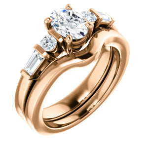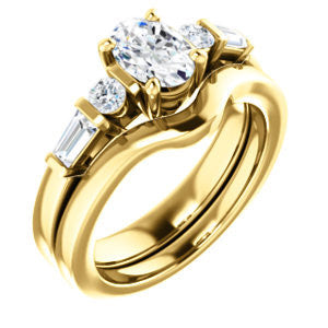 CZ Wedding Set, featuring The Sarah engagement ring (Customizable 5-stone Design with Oval Cut Center and Baguette/Round Bar-set Accents)