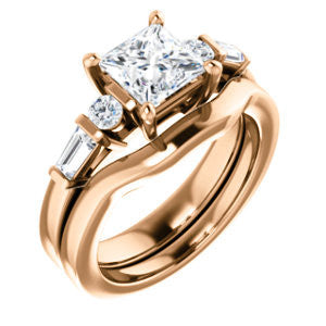 CZ Wedding Set, featuring The Sarah engagement ring (Customizable 5-stone Design with Princess Cut Center and Baguette/Round Bar-set Accents)