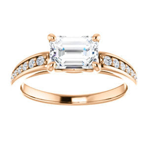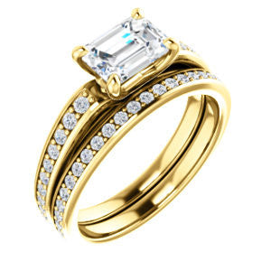 Center Stone Shape: Radiant Cut (as pictured with Emerald Cut). See this customizable ring set with other available center stone shapes here: customize setting.