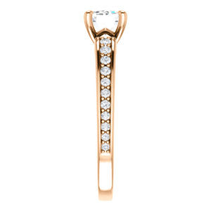 Something is missing inside this product page. Words have never been difficult for us. We decided we’re going to mostly let the picture speak for The Sashalle engagement ring. That’s because when we popped the tab on a Mexican Leon dark lager and thought “what the hell should we say about this ring?” we couldn't channel anything but a big blank. It’s got a lot of personality, this ring...but WHOSE personality? So go ahead and enjoy the pictures plural, as we provide one from multiple different angles where you can see the twenty-two (22)* stone pavé band and the raised cathedral setting with decorative trellis underneath.