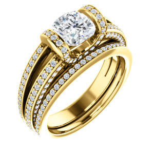 CZ Wedding Set, featuring The Scarlett engagement ring (Cushion Cut with Prong-Accented Bar Basket and Split Pavé Band)