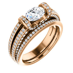 CZ Wedding Set, featuring The Scarlett engagement ring (Oval Cut with Prong-Accented Bar Basket and Split Pavé Band)