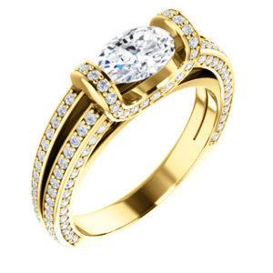 Center Stone Shape: Oval Cut (as pictured). See this customizable ring set with other available center stone shapes here: customize setting.