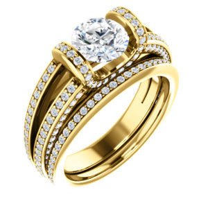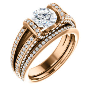 CZ Wedding Set, featuring The Scarlett engagement ring (Round Cut with Prong-Accented Bar Basket and Split Pavé Band)