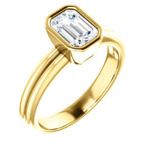 The Stacie is a Radiant cut ring for a woman that has the confidence to know she can look amazing without trying too hard. She doesn't need “glam” jewelry in the same way that she doesn't court drama in her life. She appreciates well-made things and simple beauty. The Stacie is one of the simpler engagement or purity ring jewelry pieces in our CubicZirconia.com catalog, yet there's no surprise this bezel-set style is such a popular ring. The ring design combines a sleek metallic grooved-band design crafted from any of 12 precious metals with the sizable diamond-quality sparkle that your lovely lady wants and deserves. Choose 0.33 to 5.0 carats in Radiant cut for the eye-catching solitaire center stone, or use the link provided to customize to any of 8 available center stone shapes. The Stacie solitaire ring: cuddle credits included.