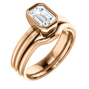 CZ Wedding Set, featuring The Stacie engagement ring (Customizable Bezel-set Radiant Cut Solitaire with Grooved Band)