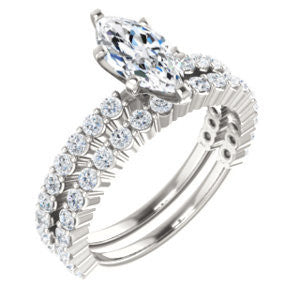 CZ Wedding Set, featuring The Thea engagement ring (Customizable 8-prong Marquise Cut Design with Thin, Stackable Pavé Band)