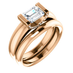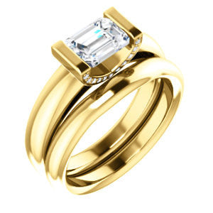 CZ Wedding Set, featuring The Tory engagement ring (Customizable Cathedral-style Bar-set Radiant Cut Ring with Prong Accents)