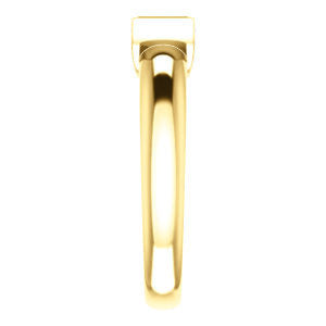 Who says you can’t go back in time? It was merely moments ago when he proposed with an engagement ring that took your breath away, down on one knee on that windswept beach where afterwards you couldn't keep your hands off of him. And no one's watching now, either. Whether you're a customer looking to reignite an existing marriage with a purchase of jewelry as a "just because" gift (good for you!)...or a customer looking to begin a new marriage journey with the perfect proposal and just the right engagement ring, The Tory ring design is definitely one for the memory books. A tapered wide band swoops up into a raised cathedral setting that puts the bar-set Radiant Cut center stone "above it all". Choose 0.33 to 3.0 carats for the 5A diamond-quality CZ center stone, and we'll manufacture The Tory in your choice of precious metals: .925 Sterling Silver, 10 karat Gold, 14 karat Gold, 18 karat Gold, Palladium, or pure 950 Platinum. Like the resort that remembers your name 13 years later, we revel in small touches that take everything up a notch. For this ring, try the side view angled pictures and see if you, too, aren't delightfully surprised with the eighteen (18)* prong accents climbing each wedge of bar setting metal. Get The Tory engagement ring as a stand-alone or together with the matching anniversary band to complete the cubic zirconia bridal set!