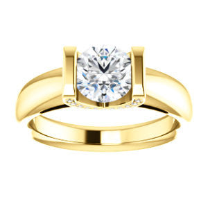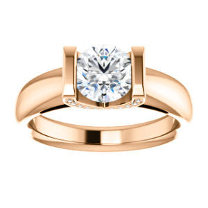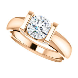Who says you can’t go back in time? It was merely moments ago when he proposed with an engagement ring that took your breath away, down on one knee on that windswept beach where afterwards you couldn't keep your hands off of him. And no one's watching now, either. Whether you're a customer looking to reignite an existing marriage with a purchase of jewelry as a "just because" gift (good for you!)...or a customer looking to begin a new marriage journey with the perfect proposal and just the right engagement ring, The Tory ring design is definitely one for the memory books. A tapered wide band swoops up into a raised cathedral setting that puts the bar-set Round Cut center stone "above it all". Choose 0.25 to 3.50 carats for the 5A diamond-quality CZ center stone, and we'll manufacture The Tory in your choice of precious metals: .925 Sterling Silver, 10 karat Gold, 14 karat Gold, 18 karat Gold, Palladium, or pure 950 Platinum. Like the resort that remembers your name 13 years later, we revel in small touches that take everything up a notch. For this ring, try the side view angled pictures and see if you, too, aren't delightfully surprised with the eighteen (18)* prong accents climbing each wedge of bar setting metal.
