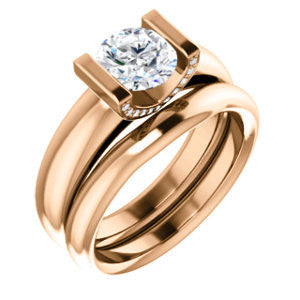 CZ Wedding Set, featuring The Tory engagement ring (Customizable Cathedral-style Bar-set Round Cut Ring with Prong Accents)
