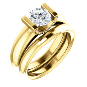 Center Stone Shape: Round Cut (as pictured). See this customizable ring set with other available center stone shapes here: customize setting.