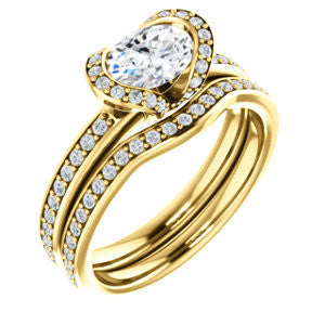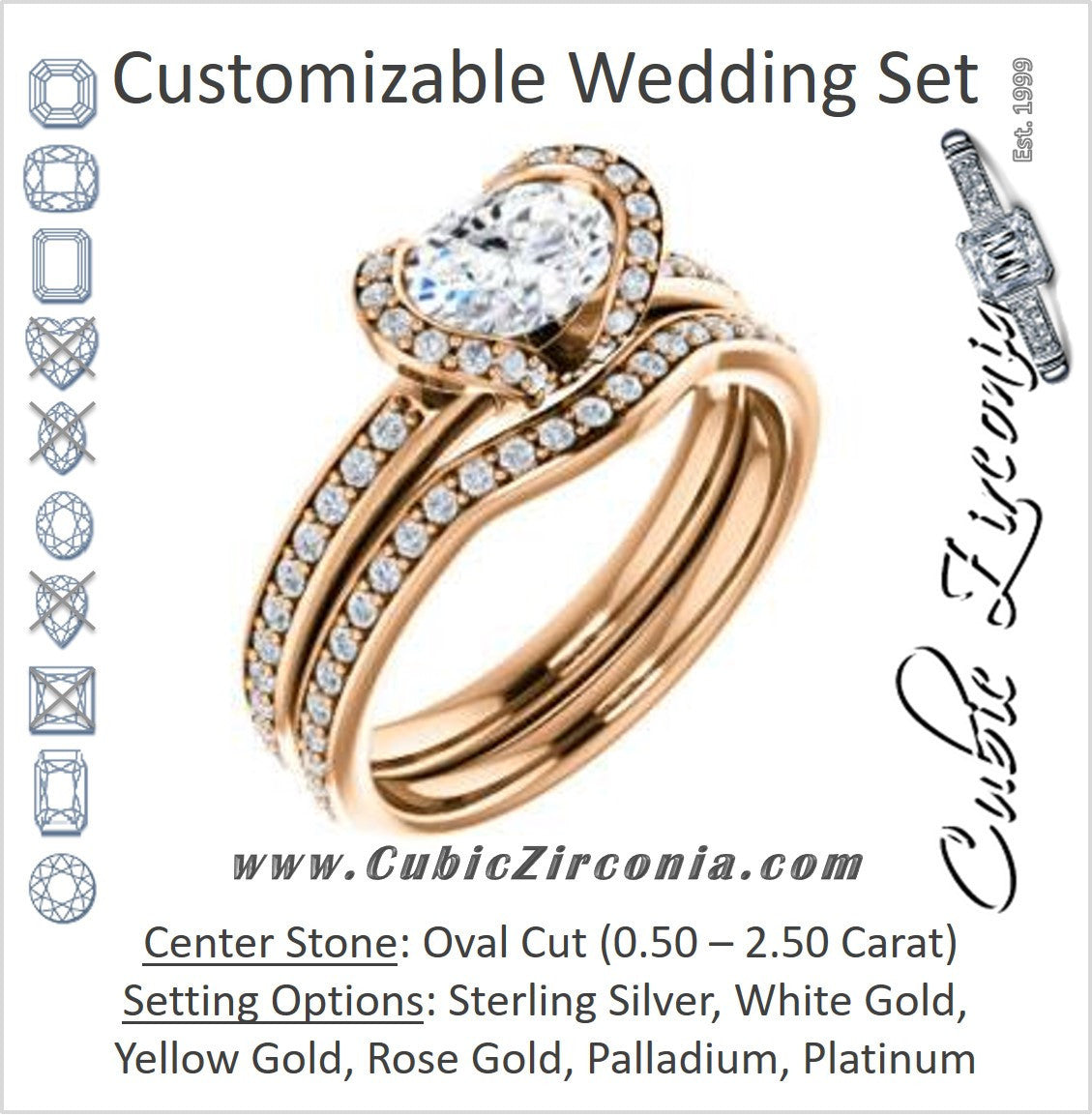 CZ Wedding Set, featuring The Victoria engagement ring (Customizable Bezel-set Oval Cut Semi-Halo Design with Prong Accents)