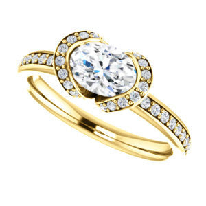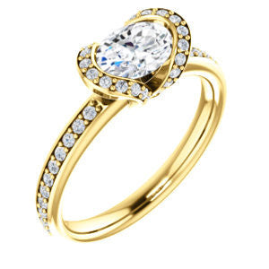 Center Stone Shape: Oval Cut (as pictured). See this customizable ring set with other available center stone shapes here: customize setting.