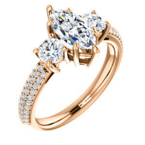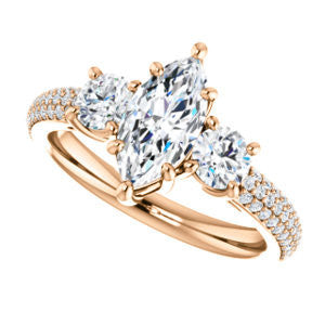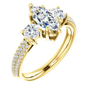 Center Stone Shape: Marquise Cut (as pictured). See this customizable ring set with other available center stone shapes here: customize setting.