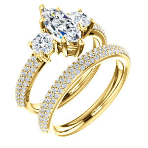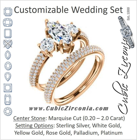 CZ Wedding Set, featuring The Zuleyma engagement ring (Customizable Enhanced 3-stone Marquise Cut Design with Triple Pavé Band)