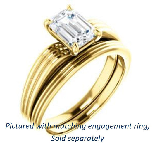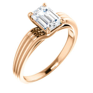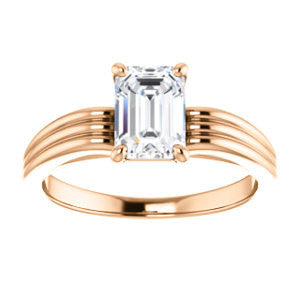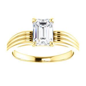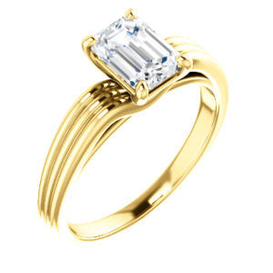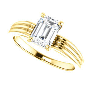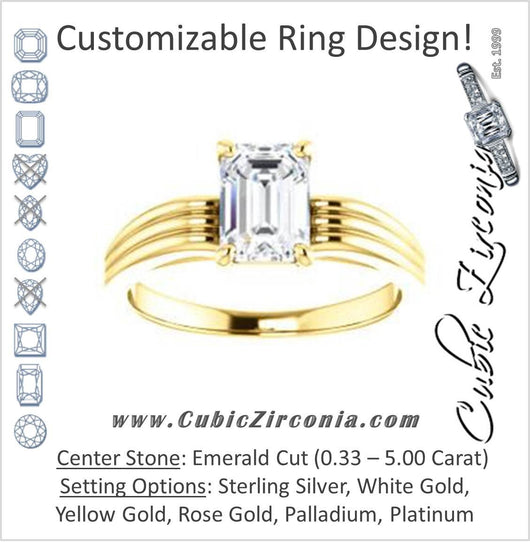 Cubic Zirconia Engagement Ring- The Therese (Customizable Emerald Cut Solitaire with Column Motif Double-Grooved-Band)