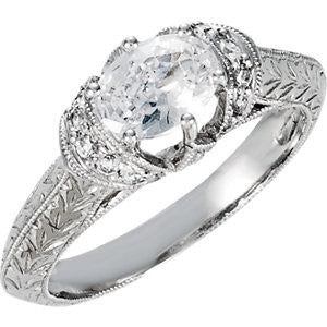 Cubic Zirconia Engagement Ring- The ________ Naming Rights 69-821 (1.18 TCW Oval Vintage Hand-Engraved)