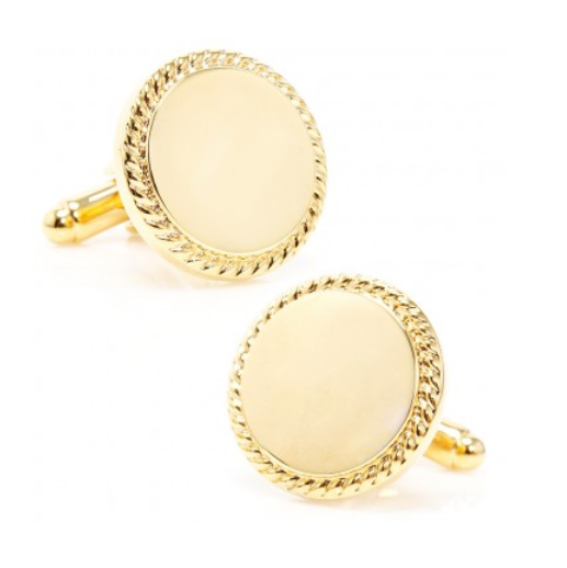 Men’s Cufflinks- 14K Yellow Gold Plated Stainless Steel with Rope Border Design