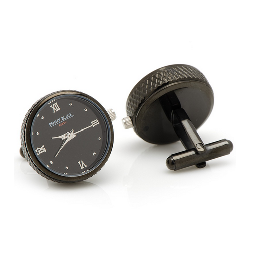 Men’s Cufflinks- Stainless Steel Functional Watch (Black)