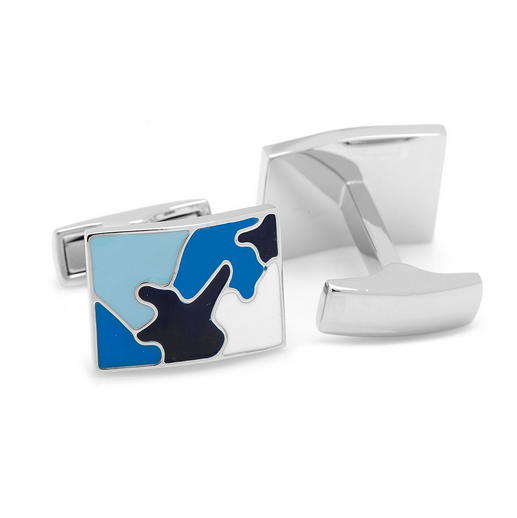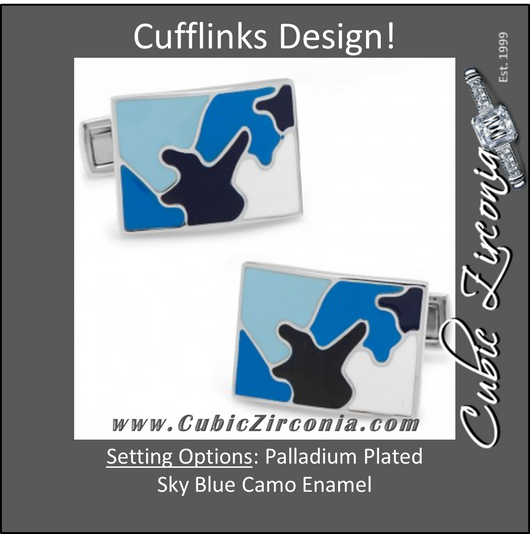 Men’s Cufflinks- Palladium Plated Sky Blue Camo