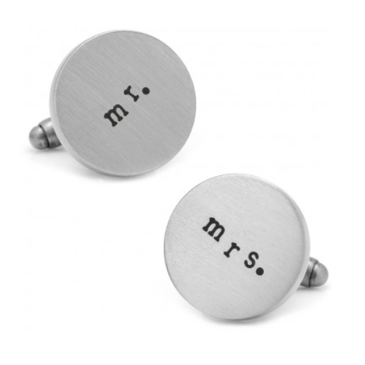 Men’s Cufflinks- Silver Plated Antique Style Wedding Series with "Mr." and "Mrs." Etchings