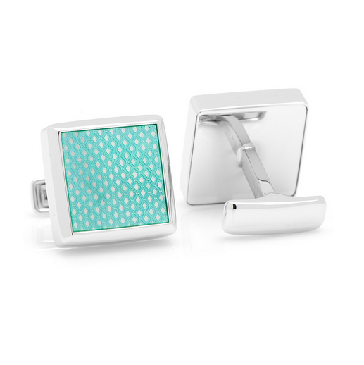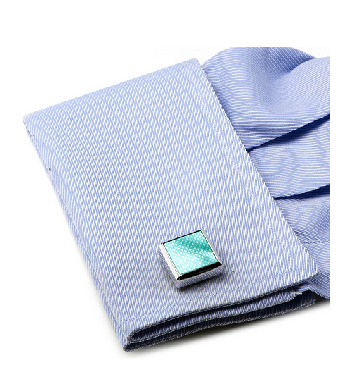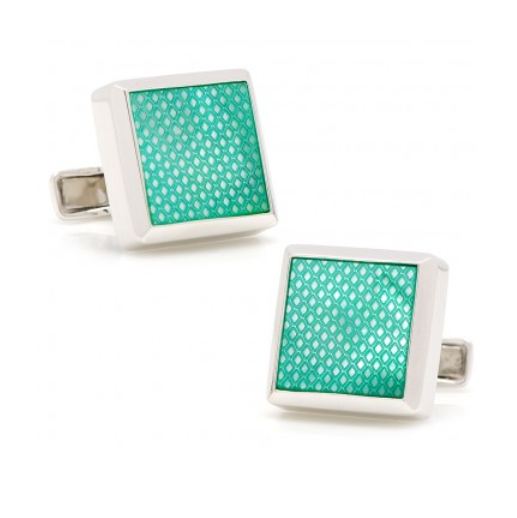 Men’s Cufflinks- Sterling Silver with Green Laser-Etched Mother of Pearl