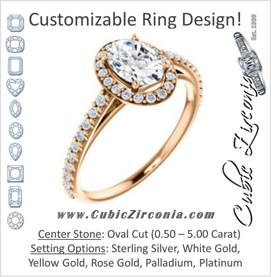 Cubic Zirconia Engagement Ring- The Monique (Customizable Oval Cut Cathedral-Halo with Thin Pave-Band)