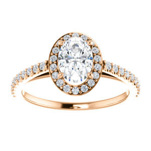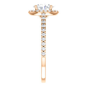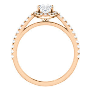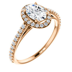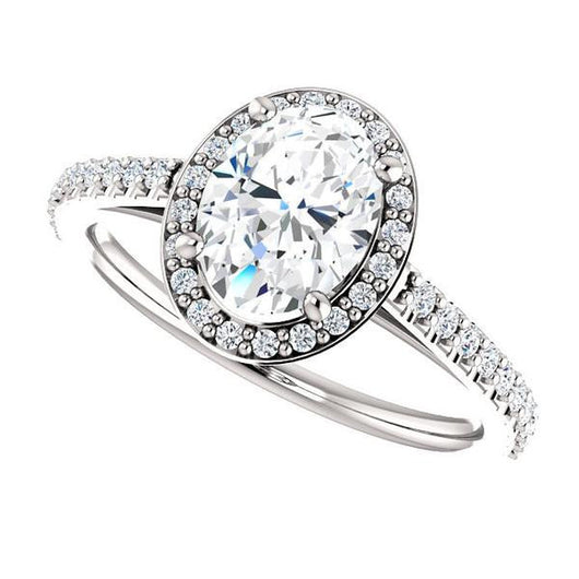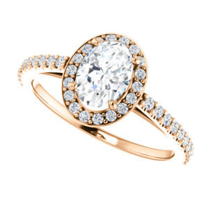 You're almost there to French kisses for life with this sassy halo-and-pavé-style, thin-banded ring style designed to frame your choice of 10 different center stone shapes (pictured and priced here in Oval Cut in sizes 0.50 to 5.0 carats). Some women say that "size doesn't matter", but we've been told that this ring just looks better and better the bigger the rock that's displayed in the center stone's prong-secured mounting above a delicate, raised, cathedral-style setting...so don't be afraid to "mount up", cowboy! Buy The Monique as a stand-alone engagement ring, or add the matching anniversary band to complete the wedding set. See The Monique engagement ring with the full wedding set here.