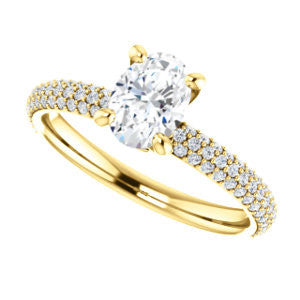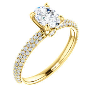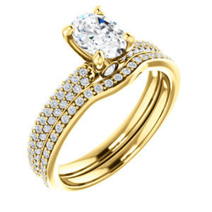 Center Stone Shape: Oval Cut (as pictured). See this customizable ring set with other available center stone shapes here: customize setting.