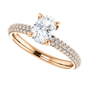Cubic Zirconia Engagement Ring- The Merari (Customizable Oval Cut with Three-sided Triple Pavé Band & Twin Bezel Peekaboo Accents)