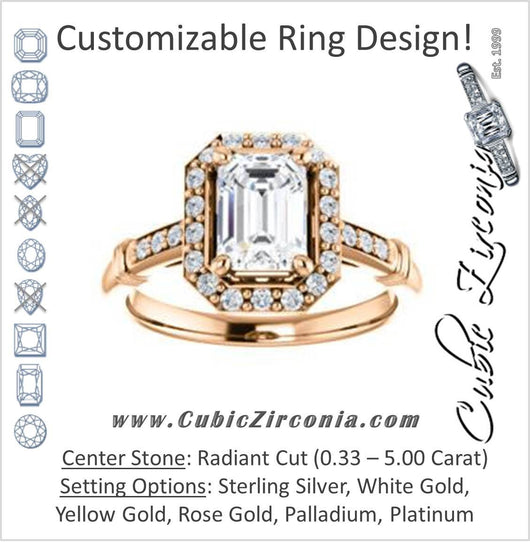 Cubic Zirconia Engagement Ring- The Thelma Ann (Customizable Cathedral-Halo Radiant Cut Design with Thin Accented Band)