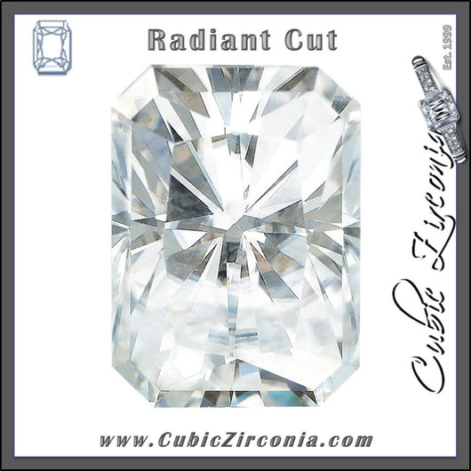 You may purchase 1-10 clear/white radiant-cut CZ gemstones in large carat sizes online via our secured shopping platform using the checkout process below, and rest assured that our inventory of in-stock gemstones will be able to fulfill your order easily and without delays. If instead of clear/white cubic zirconia gemstones, you are seeking to buy increasingly popular COLORED radiant-cut CZ gemstones, please Contact us for pricing and availability. Whether you're looking for a single colored CZ gemstone or inquiring about bulk pricing available to qualified business customers, sometimes we have many sizes and shapes of colored varieties in stock, and sometimes we don't, so we do not publish pricing and inventory online.