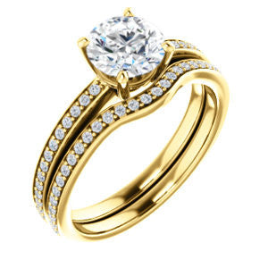 Center Stone Shape: Round Cut (as pictured). See this customizable ring set with other available center stone shapes here: customize setting.
