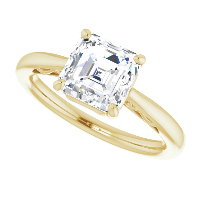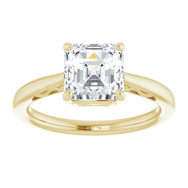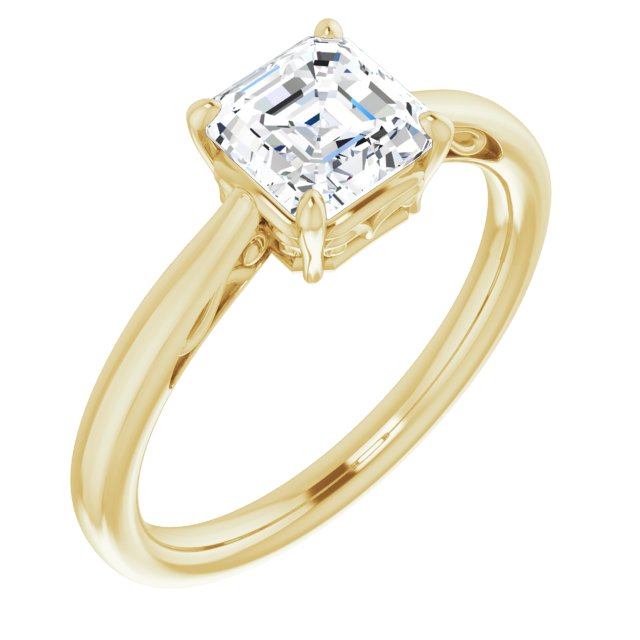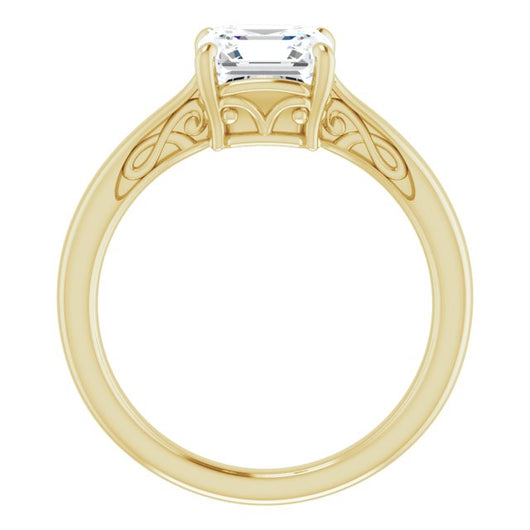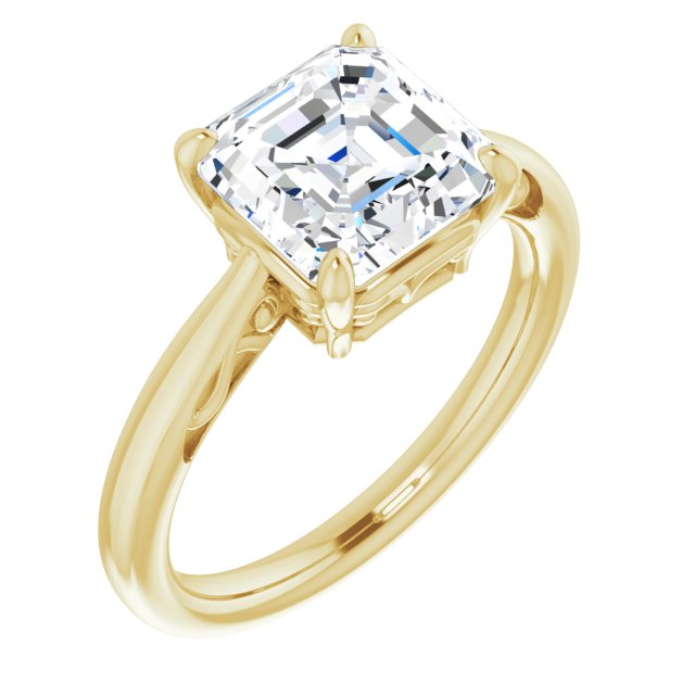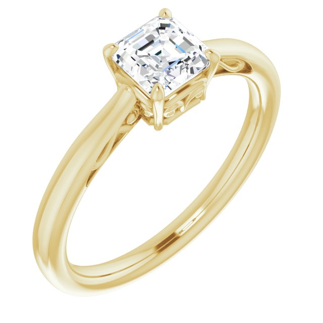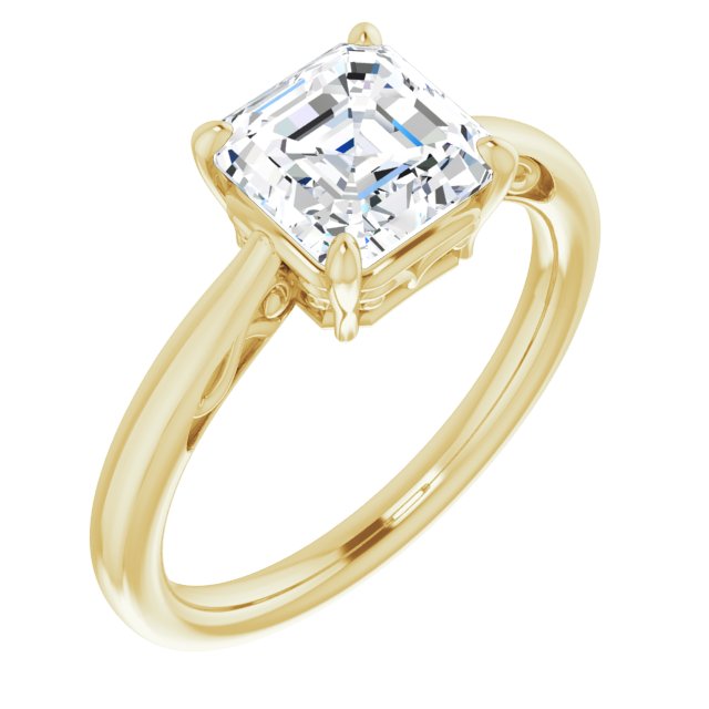 10K Yellow Gold Customizable Asscher Cut Solitaire with 'Incomplete' Decorations