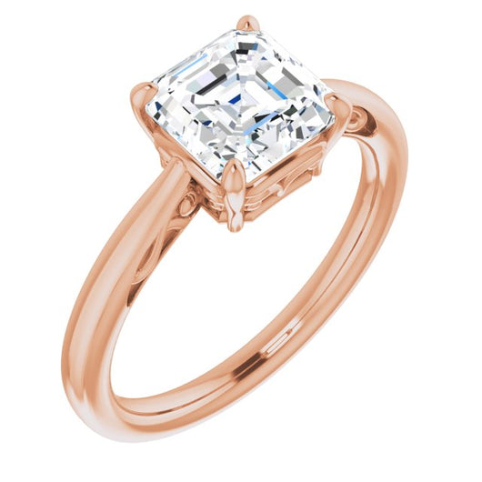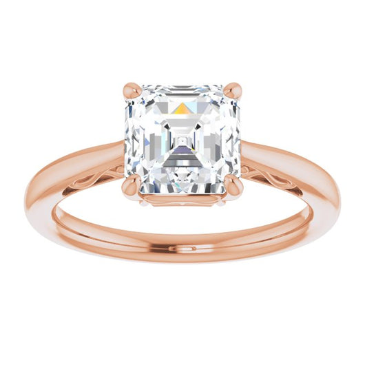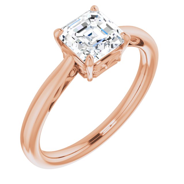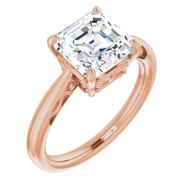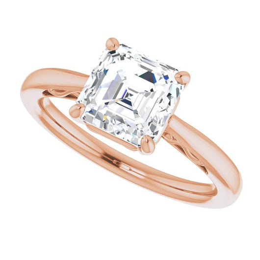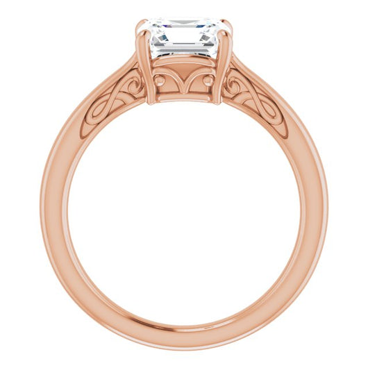 10K Rose Gold Customizable Asscher Cut Solitaire with 'Incomplete' Decorations
