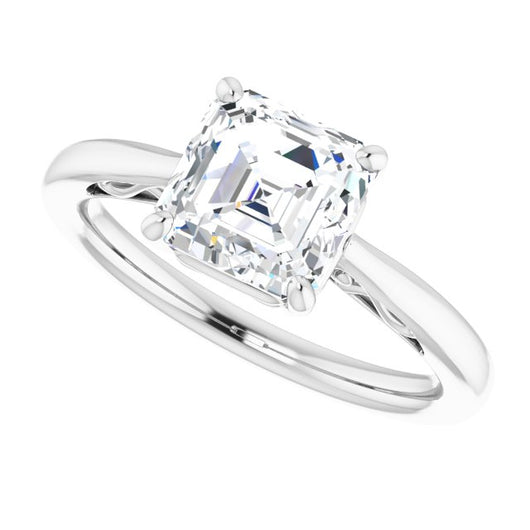 10K White Gold Customizable Asscher Cut Solitaire with 'Incomplete' Decorations