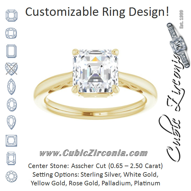 Cubic Zirconia Engagement Ring- The Abbey Ro (Customizable Asscher Cut Solitaire with 'Incomplete' Decorations)