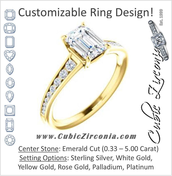 Cubic Zirconia Engagement Ring- The Abbey Ro (Customizable Emerald Cut Solitaire with 'Incomplete' Decorations)