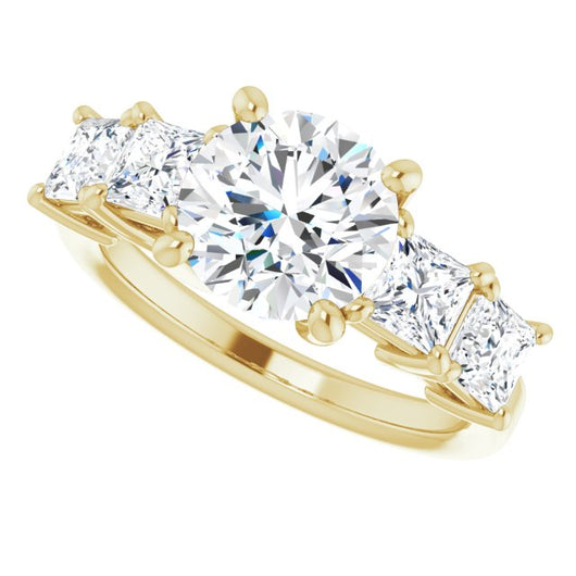 Center Stone Shape: Round Cut (as pictured). See this customizable ring set with other available center stone shapes here: customize setting.