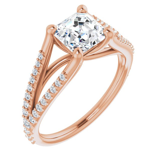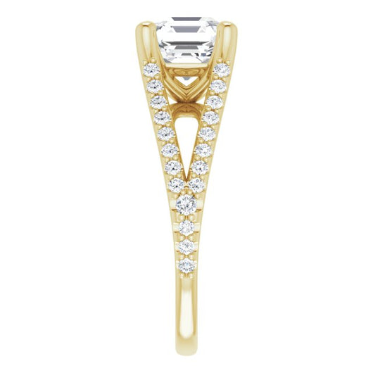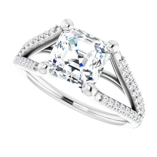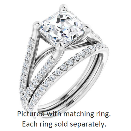 Center Stone Shape: Asscher Cut (as pictured). See this customizable ring set with other available center stone shapes here: customize setting.